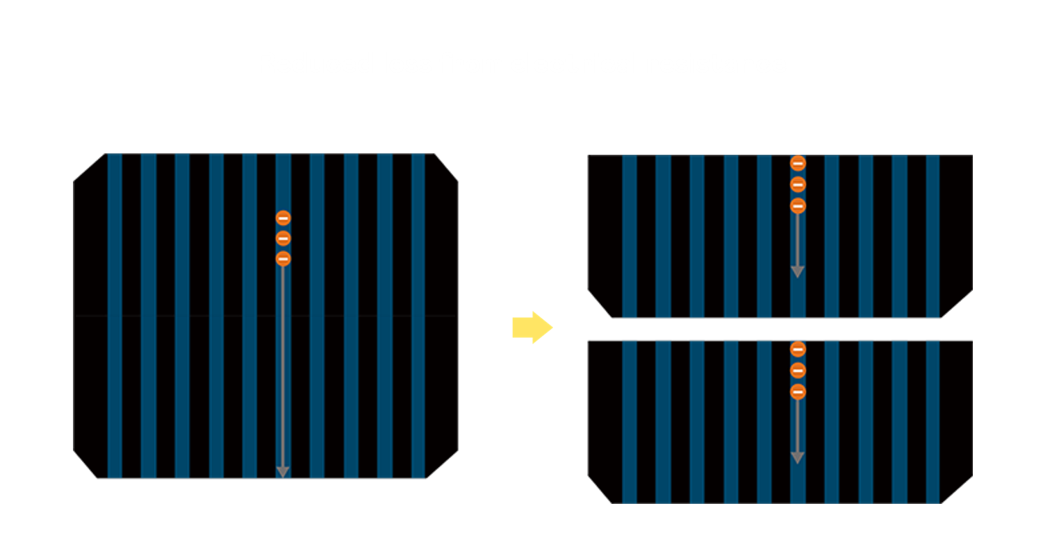 • 多条电极栅结构,可有效降低外力对于电池的影响,限制电池隐裂 (Micro-cracks) 范围,防止电流传输路径 (Current distribution) 之损坏进一步扩大。